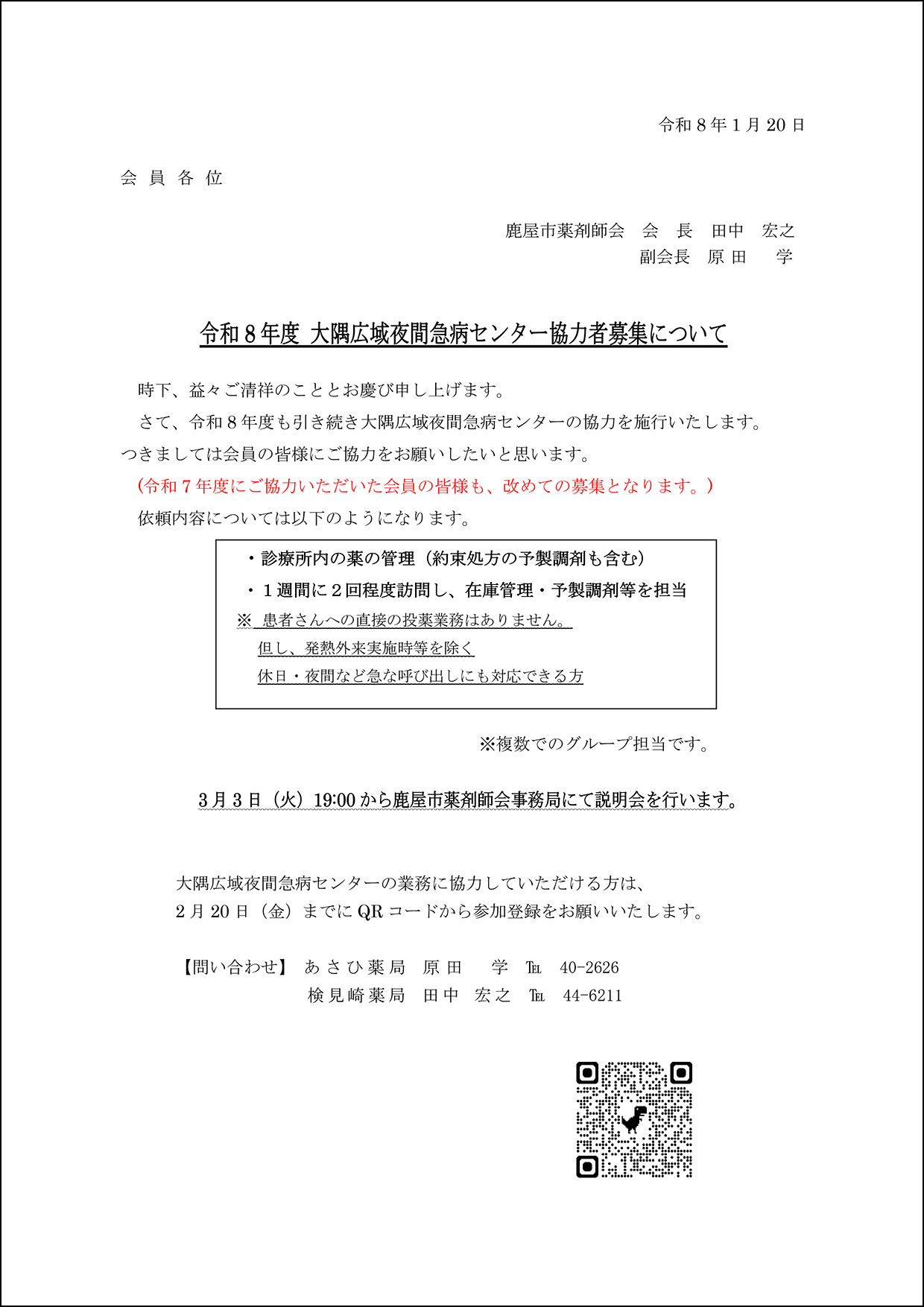 令和8年度 大隅広域夜間急病センター協力者募集について