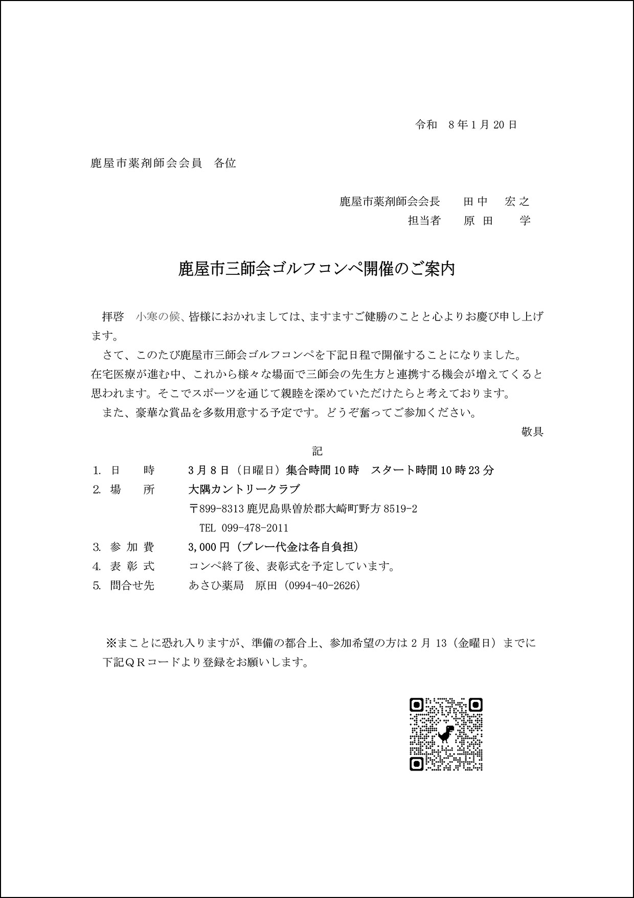 鹿屋市三師会ゴルフコンペ開催のご案内
